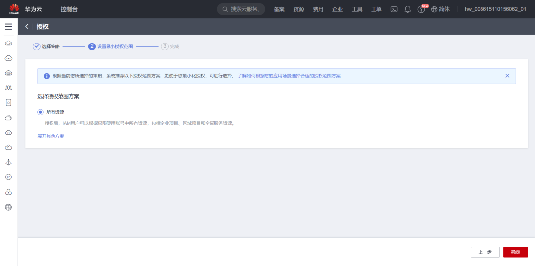 选择“所有资源”,并单击“下一步“完成配置。