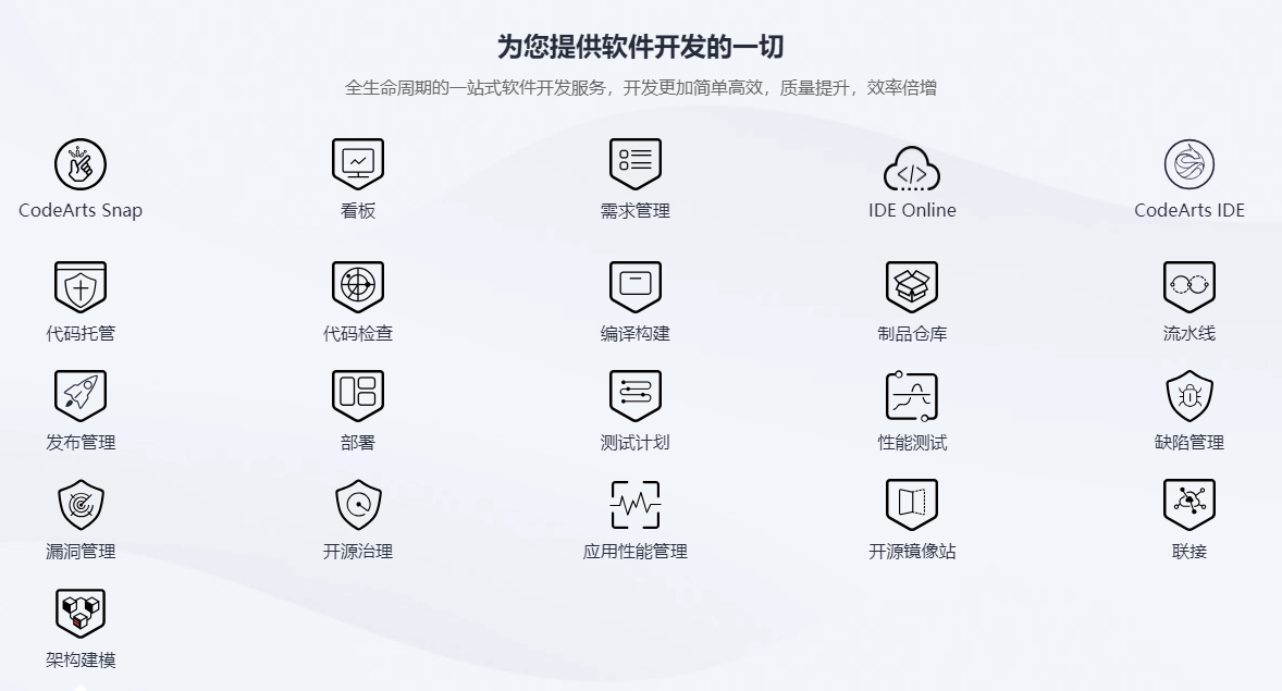 华为云软件开发平台CodeArts,是一个集华为研发实践、前沿研发理念、先进研发工具为一体的研发云平台(一站式、全流程、安全可信、开箱即用,预置最佳实践),面向开发者提供研发工具服务,让软件开发简单高效,助力企业质量提升和效率倍增。了解产品请戳【软件开发平台 CodeArts】。