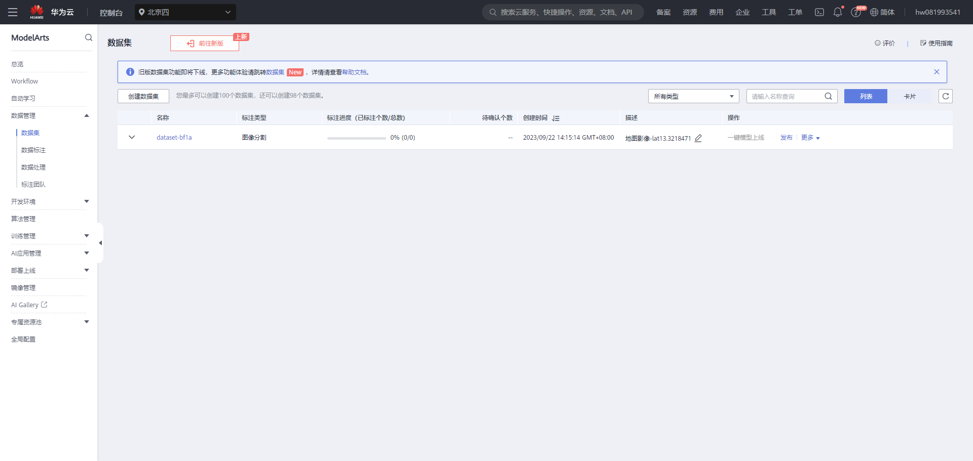 在ModelArts控制台中,选择“数据管理”-“数据集”-“创建数据集”。填写数据集名称和描述,并选择数据集类型为“图像-目标检测”。然后点击“下一步”。 在“数据集上传”页面,选择“本地上传”,将准备好的数据集文件夹上传到ModelArts中。上传完成后,点击“下一步”。