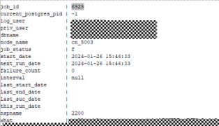 可以通过如下SQL筛选处于该状态的job:select * from pg_job where job_status='f' and last_start_date is not null;