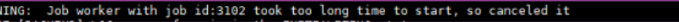 状态六:作业线程启动时太慢被杀掉或者集群或者节点状态异常导致job线程丢失,此时作业的job_status为f 且last_end_date和last_suc_date为空,我们可以登录后台,搜索对应cn日志,zgrep 'job_id: xxx',在该日志文件中若找到如job worker with job id:xxx took too long time to start ,so canceled it