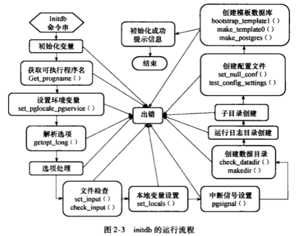initdb把用户指定的选项转换成对应的参数,通过外部程序调用的方式执行postgres程序。postgres程序在这种方式下将进入bootstrap模式创建数据集簇,并读取后端接口postgres.bki文件来创建模板数据库。