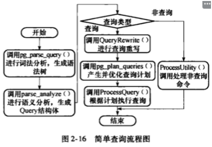 用户命令分为两种:1.查询命令,插入、删除、更新和选择;2.非查询命令,如创建/删除表、视图、索引等命令。服务进程Postgres根据不同的命令类型选择不同的策略进行处理