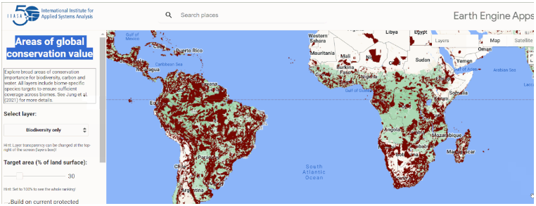 这些图层可通过专用的地球引擎应用程序(保护重要性)进行公开导航。50 公里的粗粒度版本也可在 Zenodo 数据库中找到,但未上传到谷歌地球引擎。