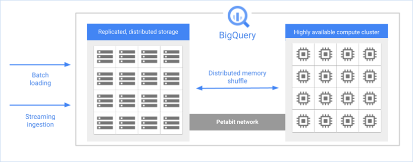 BigQuery 是一种全代管式企业数据仓库,可帮助您使用机器学习、地理空间分析和商业智能等内置功能管理和分析数据。BigQuery 的无服务器架构允许您使用 SQL 查询来回答组织面临的最大问题,而无需管理基础架构。BigQuery 的可扩缩、分布式分析引擎可让您在几秒钟内查询 TB 级数据,在几分钟内查询 PB 级数据。