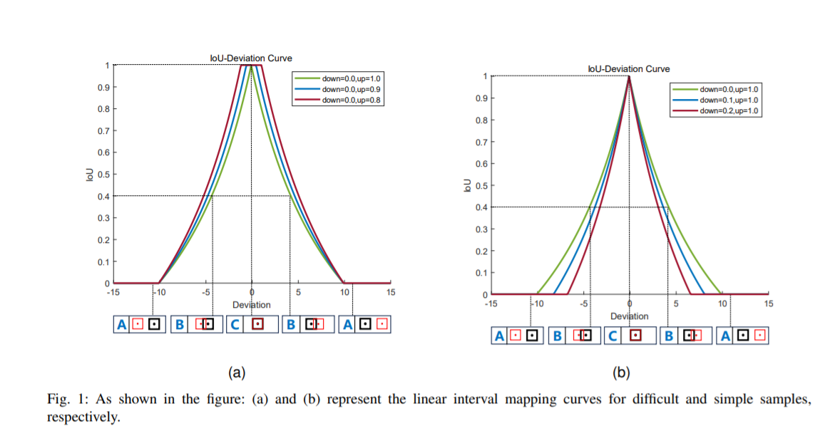 如图所示:(a)和(b)分别表示困难样本和简单样本的线性区间映射曲线。