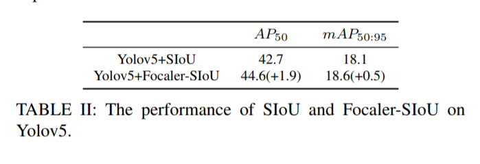 AI-TOD是遥感图像数据集,与一般数据集不同的是,它包含了大量的微小目标,目标的平均大小仅为12.8像素。本实验选择YOLOv5s作为检测器,对比方法为SIoU。实验结果如表二所示: