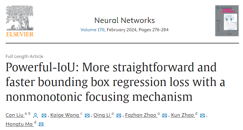 摘要:边界框回归(Bounding box regression, BBR)是目标检测中的核心任务之一,而BBR的损失函数对其性能影响很大。然而,我们观察到现有的基于iou的损失函数受到不合理的惩罚因素的影响,导致锚框在回归过程中膨胀,显著减缓了收敛速度。为了解决这个问题,我们深入分析了锚框增大的原因。为此,我们提出了一种结合了目标尺寸自适应惩罚因子和基于锚框质量的梯度调节函数的强效iou (PIoU)损失函数。PIoU损耗引导锚框沿着有效路径回归,从而比现有的基于iou的损耗更快地收敛。此外,我们还研究了聚焦机制,并引入了一个非单调注意层,将其与PIoU结合,得到了一个新的损失函数PIoU v2。PIoU v2损耗增强了对中等质量锚框的聚焦能力。通过将PIoU v2整合到流行的目标检测器(如YOLOv8和DINO)中,我们在MS COCO和PASCAL VOC数据集上实现了平均精度(AP)的提高和性能的改进,从而验证了我们提出的改进策略的有效性。