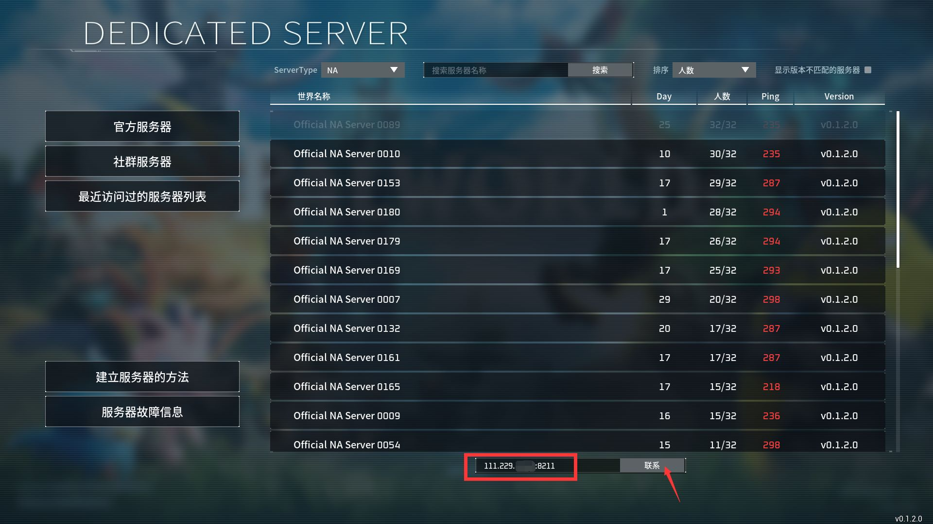 第三步:可以让玩家输入您已部署服务器的公网IP地址和端口好(如11.11.11.11:8211),连接服务器成功后即可畅快联机开玩。