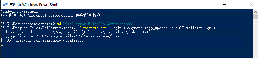 在PowerShell中运行如下脚本,即可开始更新(无需切换目录)。