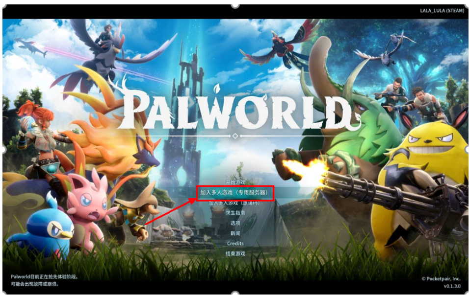 步骤3 打开游戏界面,点击“加入多人游戏(专用服务器)”: