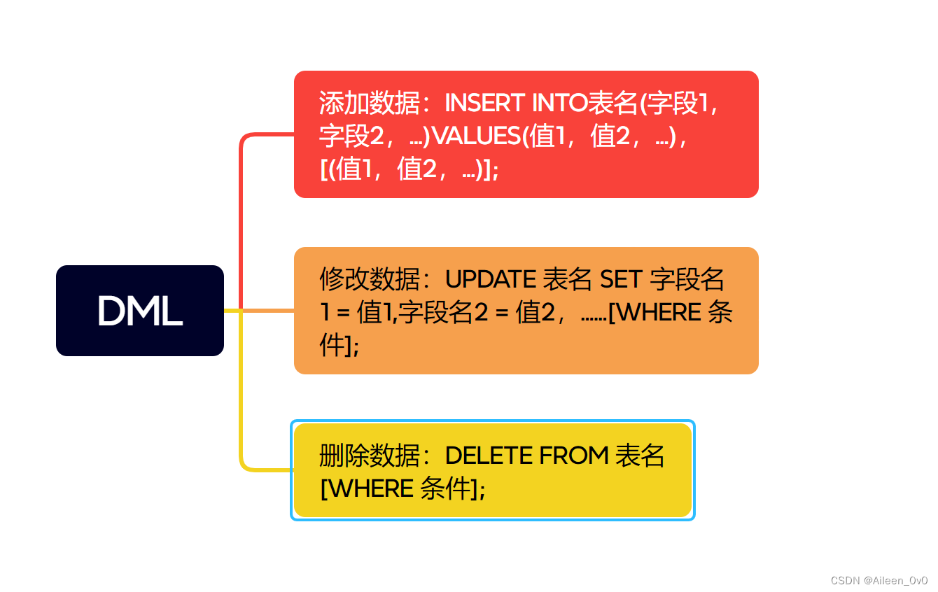 - DML (Data Manipulation Language):数据操作语言,用来对数据库中表的数据记录进行增删改操作。