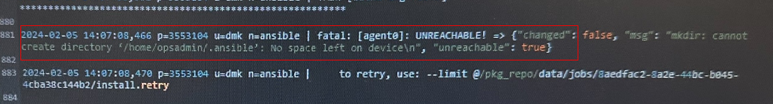 1、查看报错日志:提示管理节点磁盘空间不足