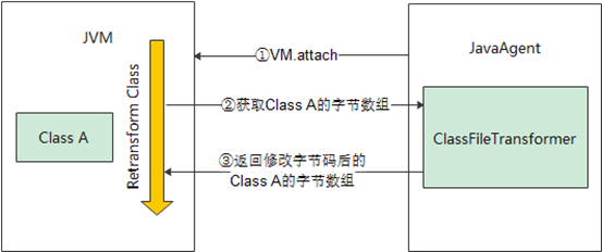 动态加载时,和静态加载不同的是,此时JVM已在运行,目标类已被加载,就不能像静态加载时一样触发字节码增强过程,在使用动态加载的过程中,往.往会通过Instrumentation API来触发目标类(当然也可以指定所有已被加载的类)的重转换过程,在重转换过程中就会触发到Agent构建的类文件转换器,从而完成字节码增强过程。
