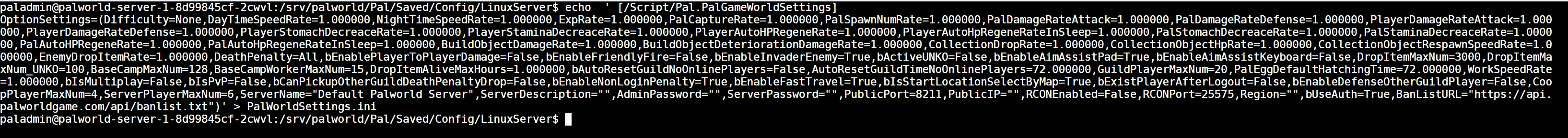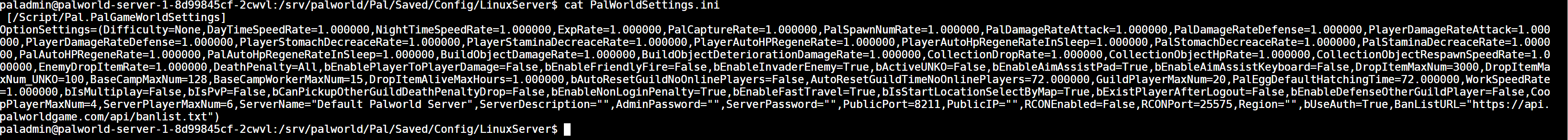 cat PalWorldSettings.ini
