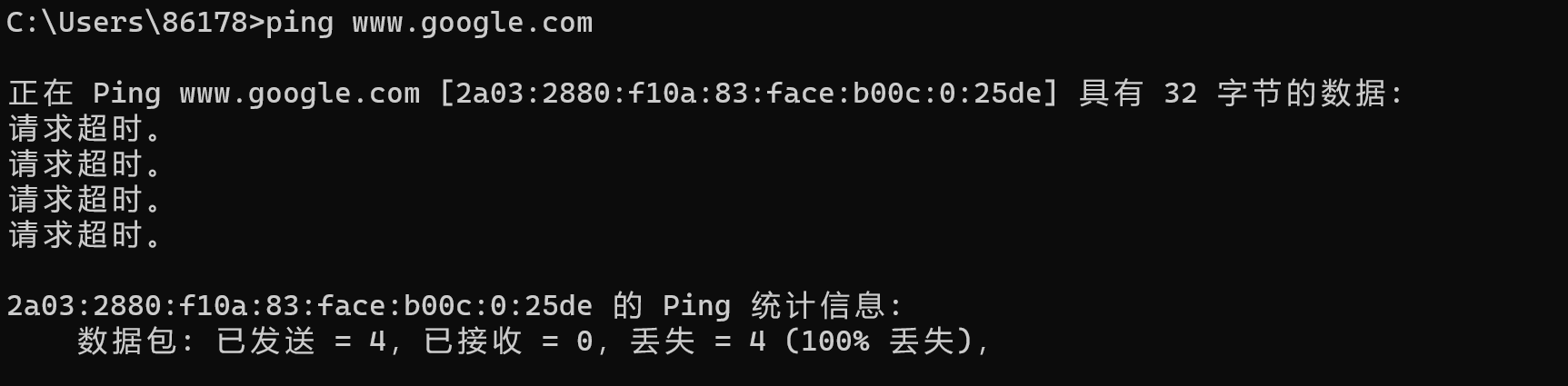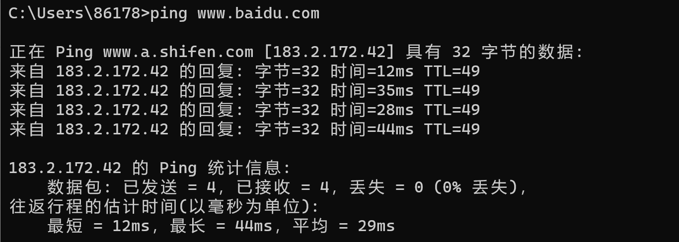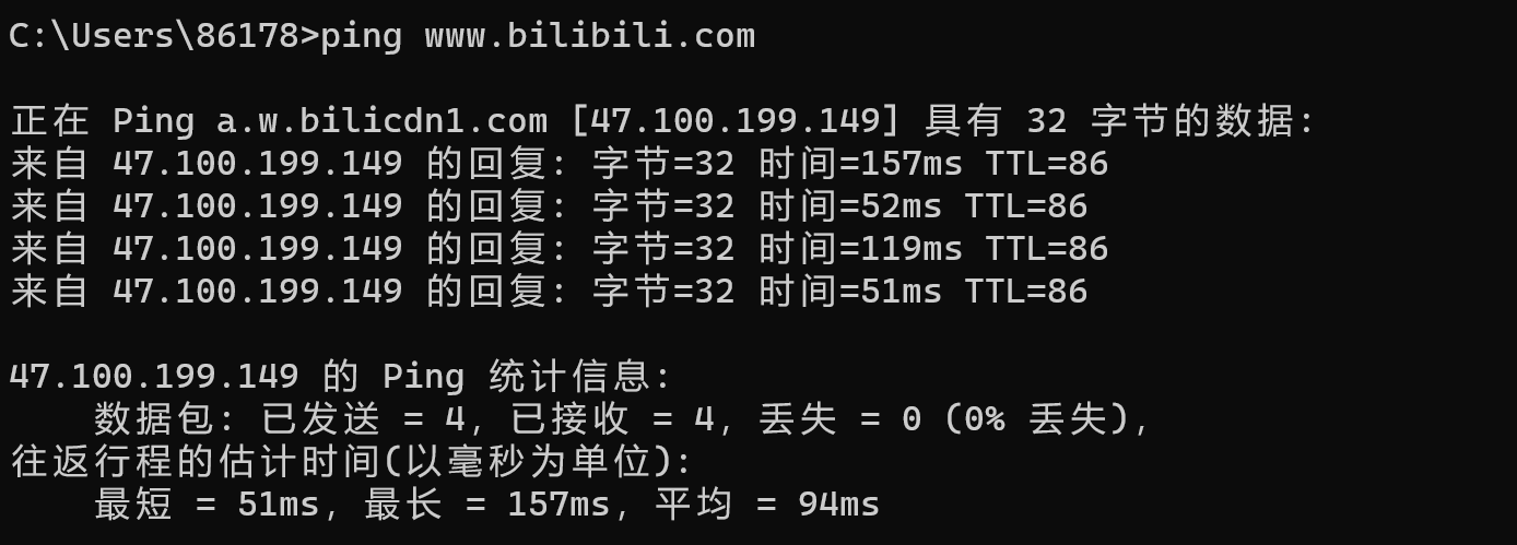 • 让我们通过控制台,利用ping 指令来看看我们访问百度,b站的往返时延,以及没有VPN情况下访问谷歌的往返时延.