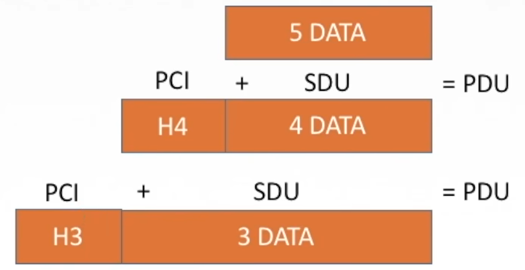 PDU协议数据单元:对等层次之间传送的数据单位 [继续往下传的数据单位]