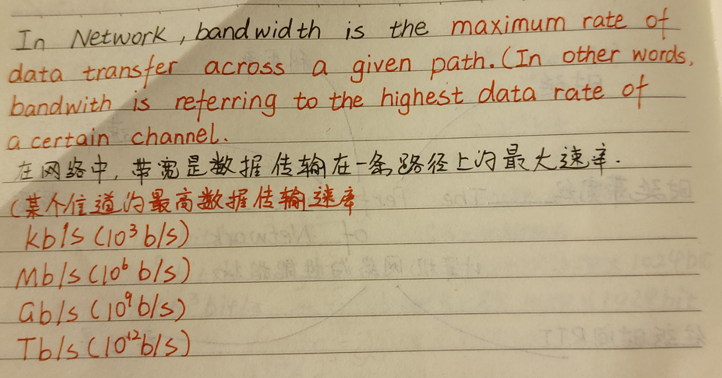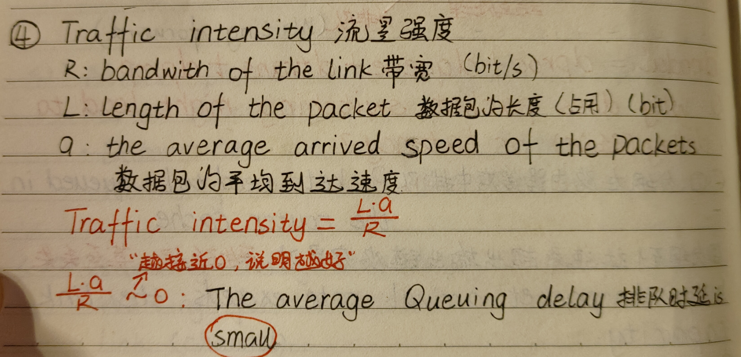 • 排队时延 --- 链路上数据等待输出/入的时间 [相当于在高铁站等待安检的时间]