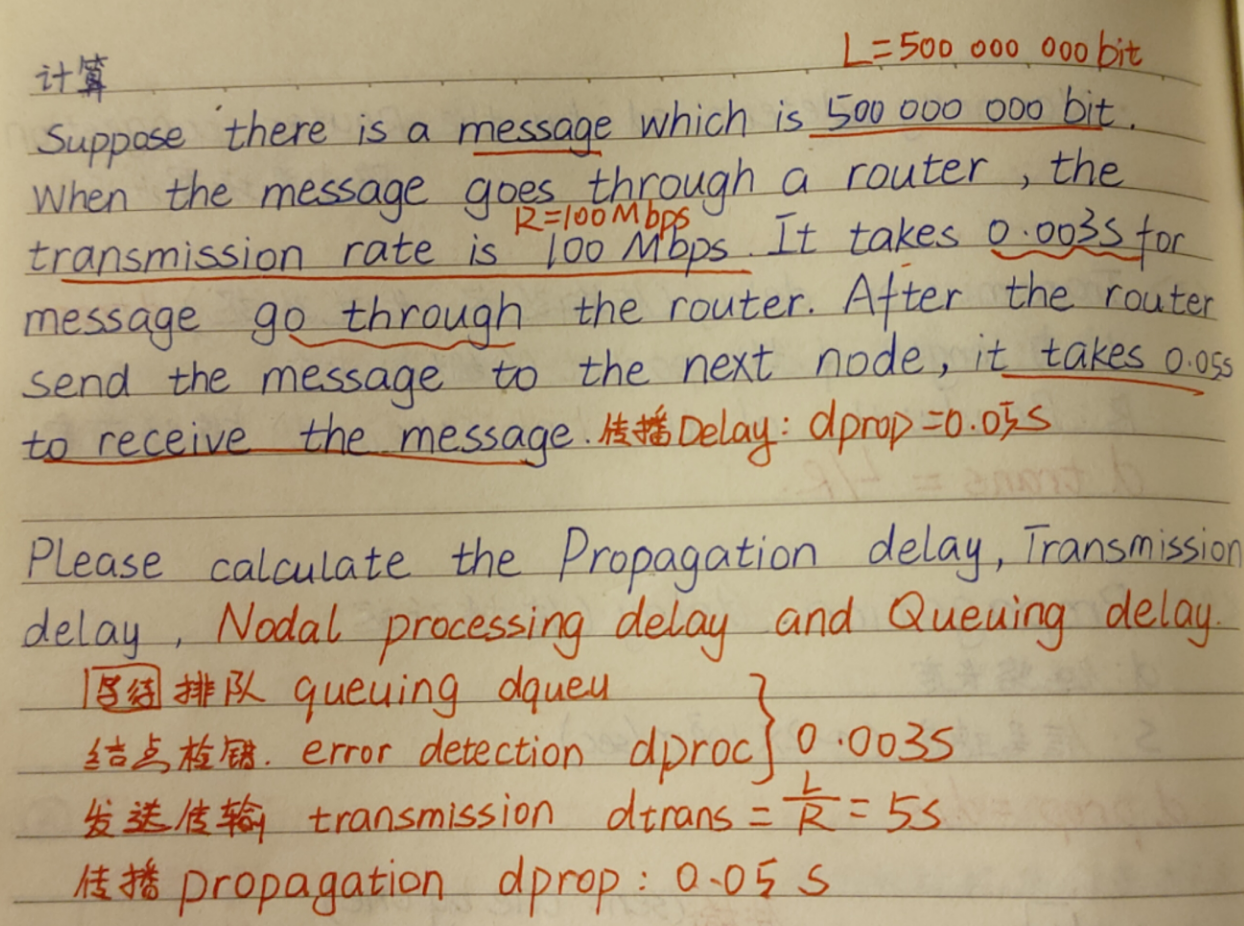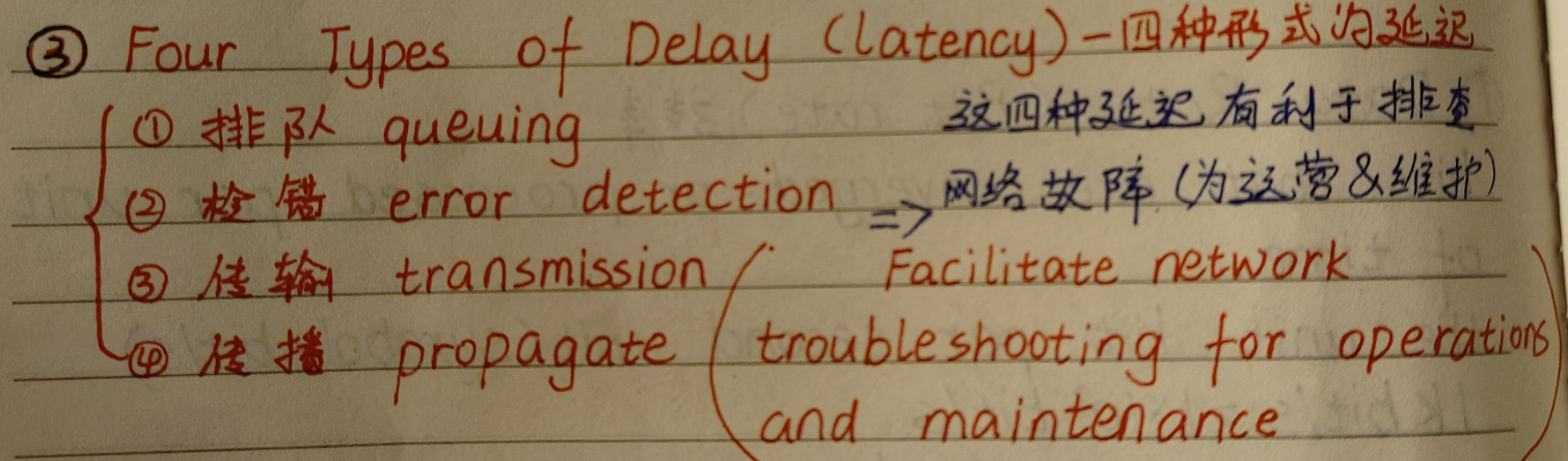 • 处理时延 --- 对数据减小检错,并找到数据出口 [相当于在高铁站进行安检所花费的时间]