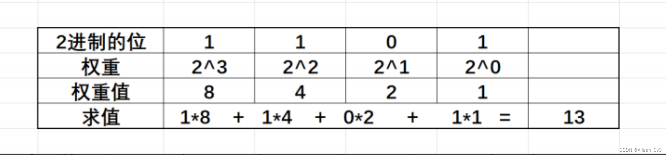 二进制转十进制的方法:(二进制每个位的值X该位值所占权重)再求和得到其对应的十进制的值