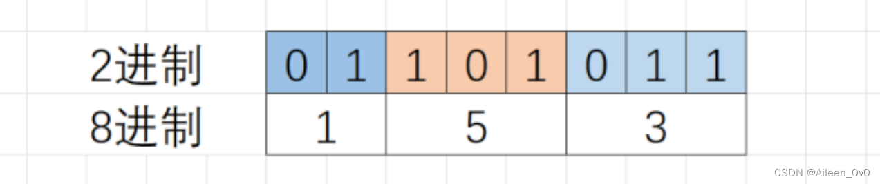 ⽐如7的二进制是111,所以在2进制转8进制数的时候,从2进制序列中右边低位开始向左每3个2进制位会换算⼀ 个8进制位,剩余不够3个2进制位的直接换算。