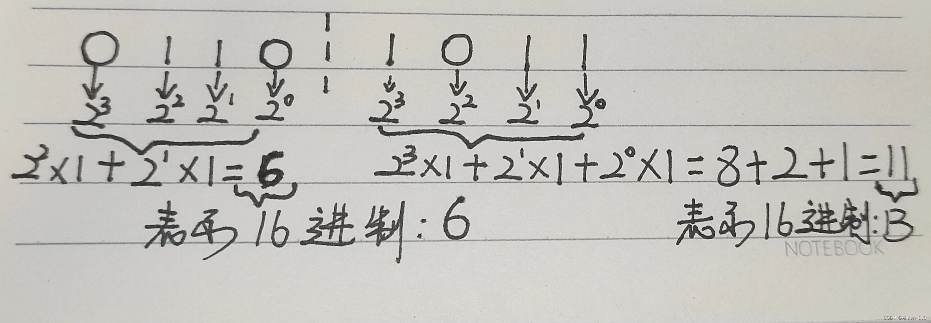 ⽐如 f 的⼆进制是1111,所以在2进制转16进制数的时候,从2进制序列中右边低位开始向左每4个2进制位会换算⼀个16进制位,剩余不够4个⼆进制位的直接换算。