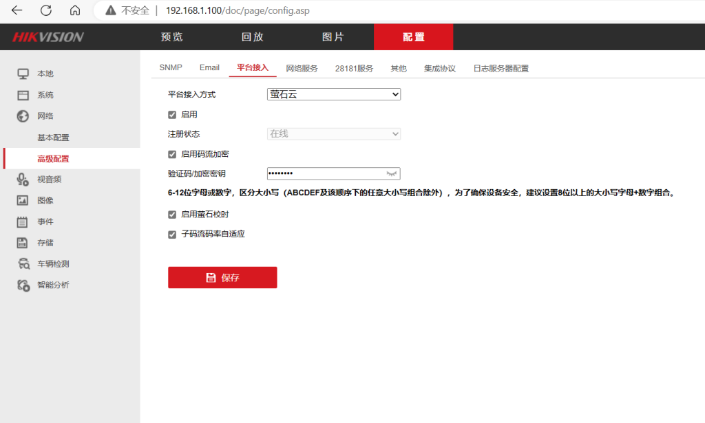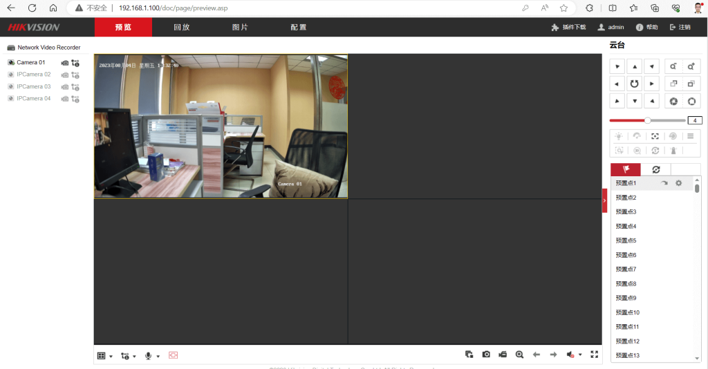 保证自己的开发电脑和录像机在同一网段下(连接的路由器是同一个即可),访问192.168.1.100,输入账户密码登录(默认账号admin,密码是在首次配置录像机时设置的密码)。