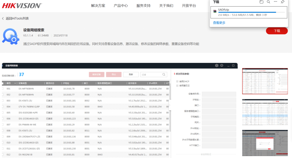 官网下载SADP,安装好之后,添加同一网段下设备。