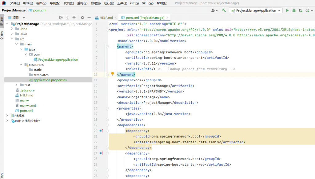 pom.xml是Maven的配置文件,如果需要导入新的jar包,只需要在这里面配置,然后刷新,即可自动下载导入。