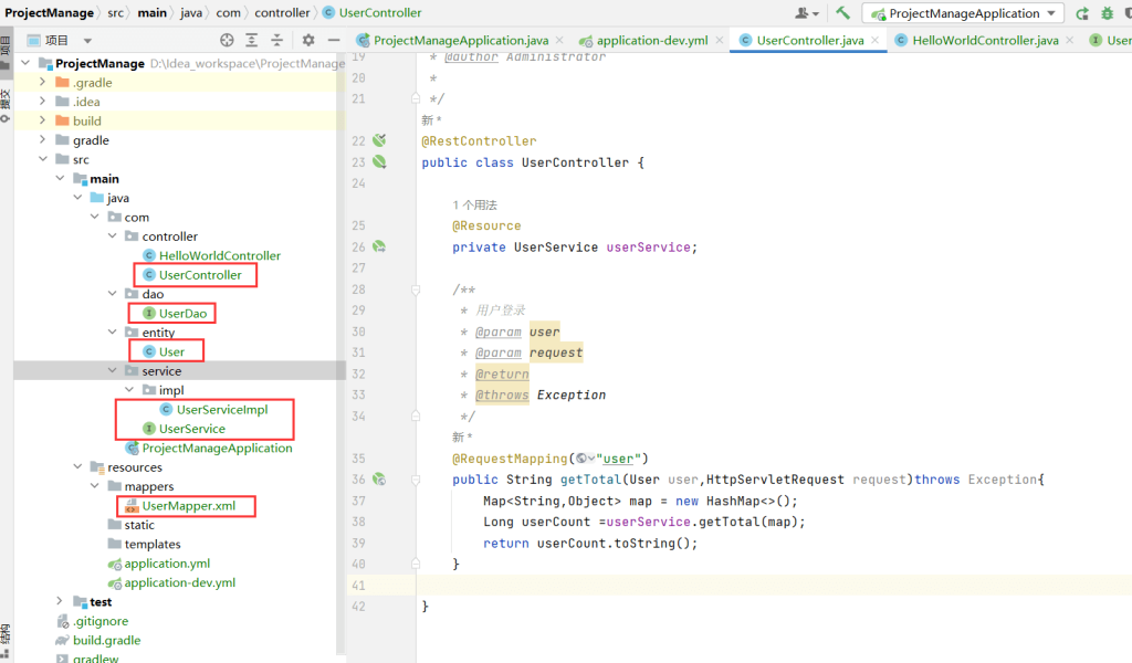 按照控制器->服务层->持久层->映射文件->实体的顺序依次编写