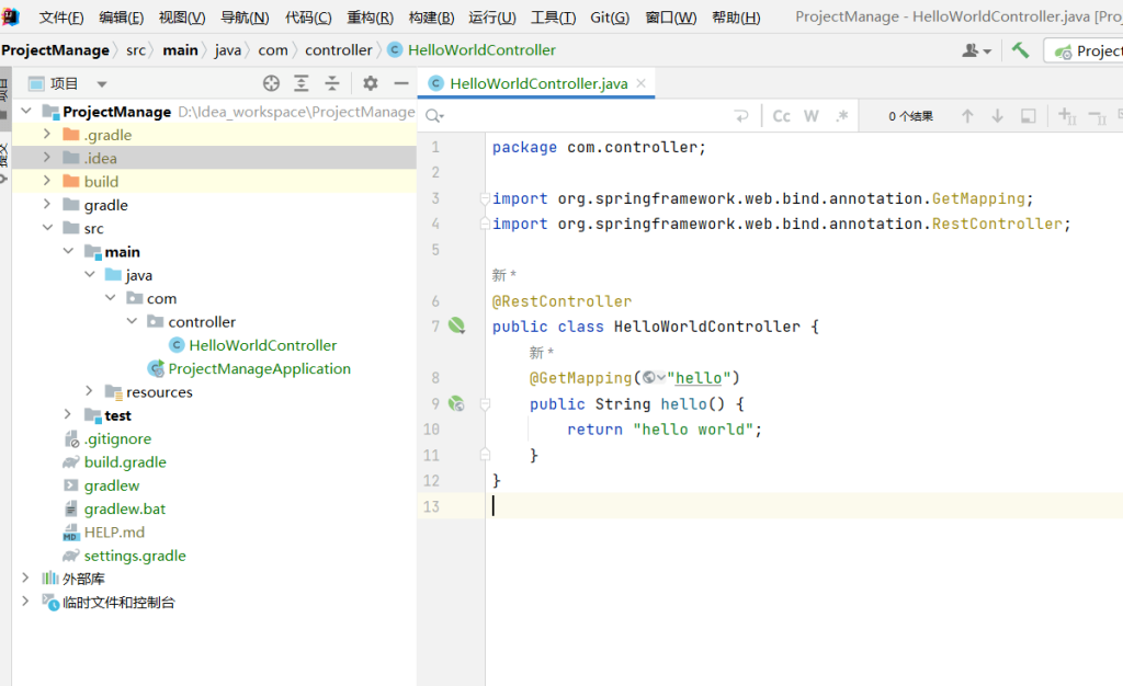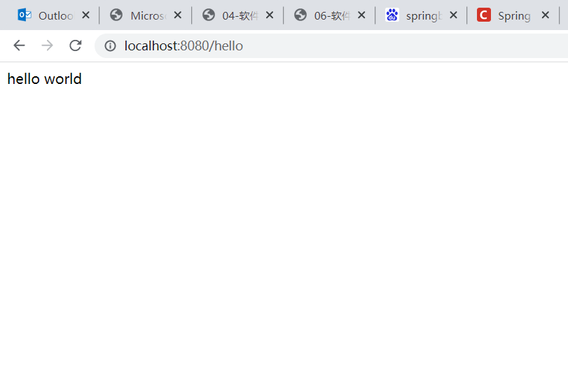 右上方运行项目,输入l0calhost:8080/hello,如果按照预期返回值,便是搭建成功。