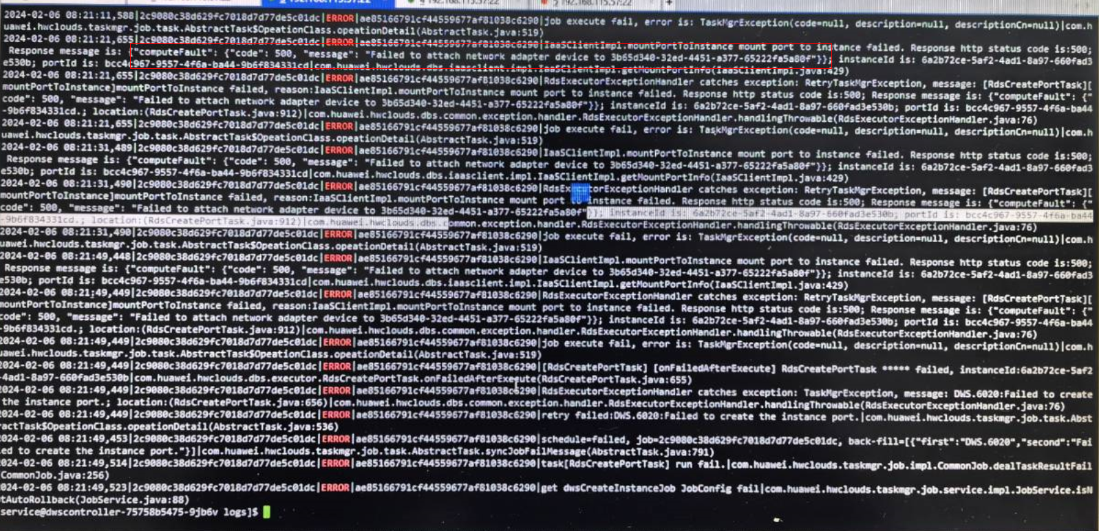 1、在创建虚拟端口RdsCreatePortTask时报错,属于网络问题