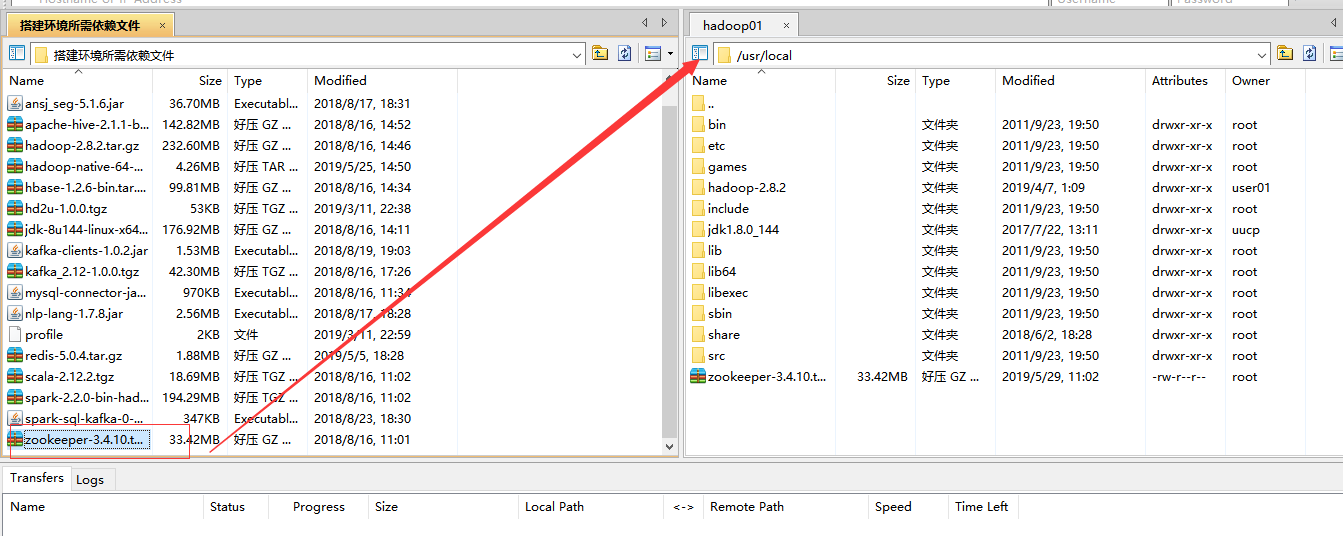 1. 使用XFTP将Zookeeper的压缩包,上传到虚拟机,如果你不能传过去可以上传到