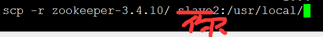7. 将zookeeper拷贝其他机器slave1和slave2,以后的slaveN都可以