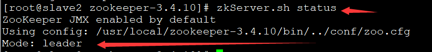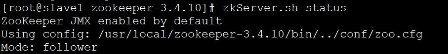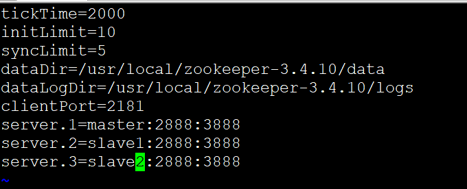 同样需要配置slave1,slave2的ZK_HOME,并且修改data下的myid文件,2 3分别对应你自己的zoo.cfg,上server后的数字.