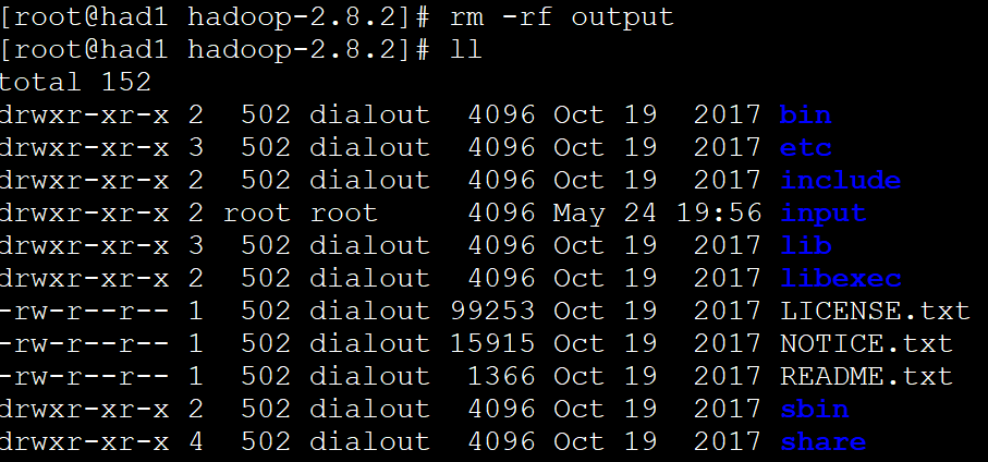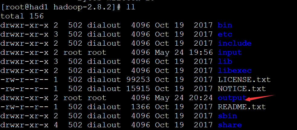 11. 发现在hadoop-2.8.2目录下多了output目录