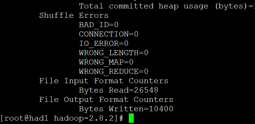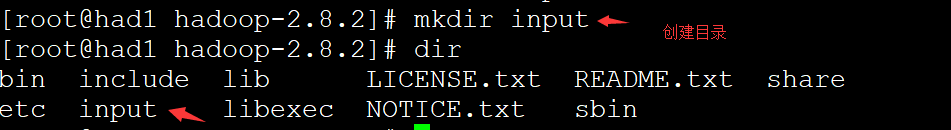 hadoop jar share/hadoop/mapreduce/hadoop-mapreduce-examples-2.8.2.jar wordcount input output