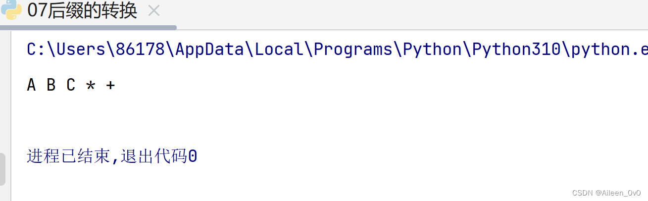 再看看(A+B)*C,对应的后缀形式是AB+C*