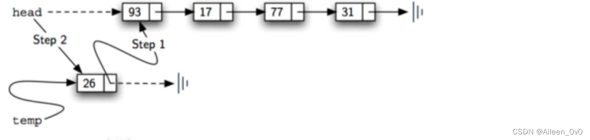 #表头指向新增加的临时结点