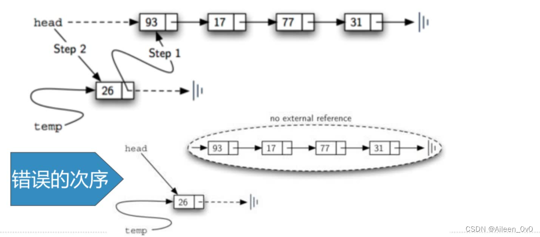 注意:第三第四行代码顺序不能调换,否则会发生链表丢失