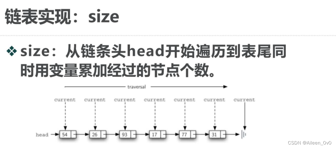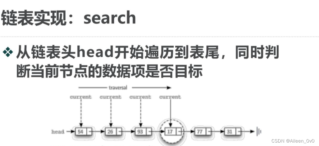 如果想访问到链表中的所有节点,就必须从第一个节点沿链接遍历下去.