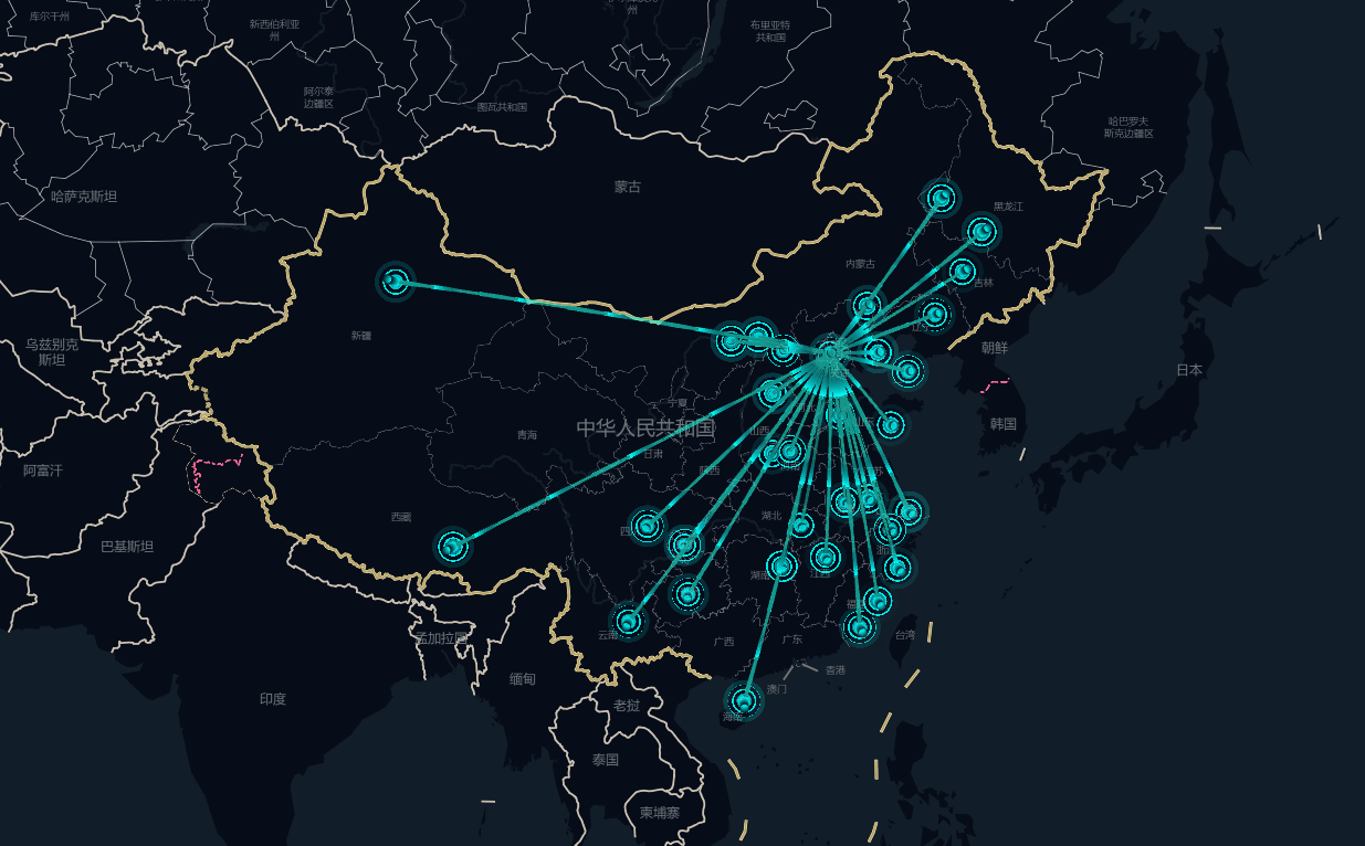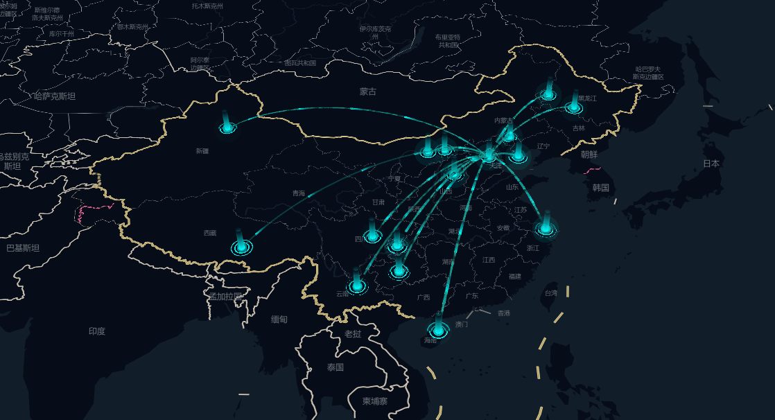 下面我们看一个通过 MapVGL 来实现的数据可视化的Demo,某公司全国网点建设历年增长可视化
