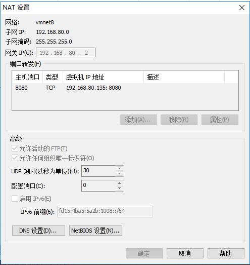 因为我们的had1和虚拟网络配置的NAS网关不同,所以,linux虚拟机就不能访问外部。我这里加了一个东西,就是DNS SERVER,让内部的DNS Server和外部的一样。