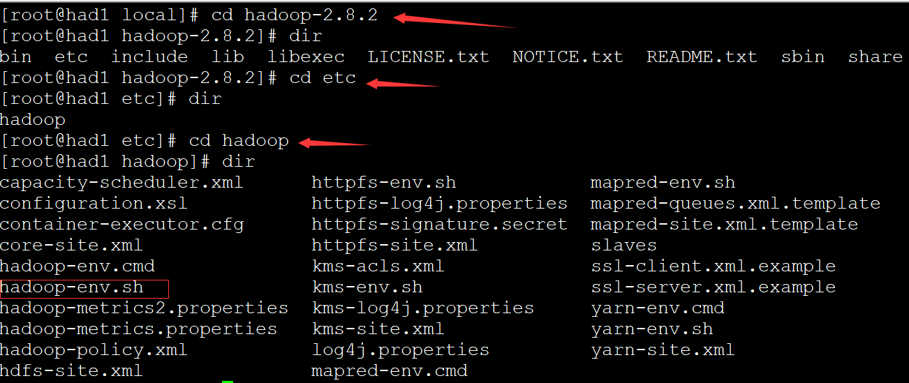 先进到hadoop-2.8.2的目录下,找我们要修改的文件