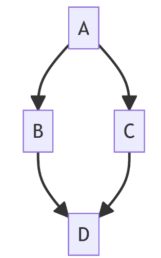 graph TD; A-->B; A-->C; B-->D; C-->D;