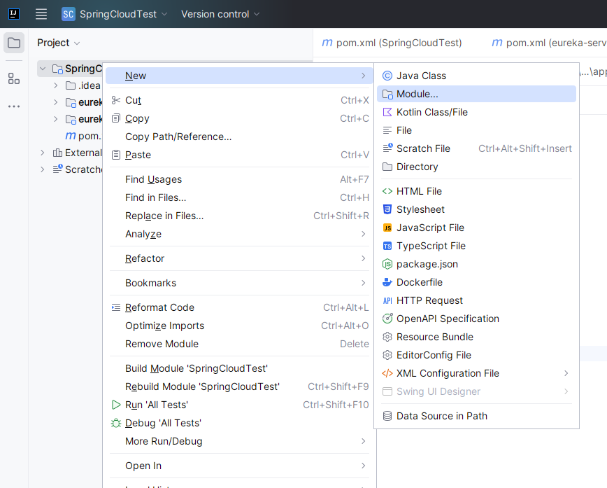 我们来新建项目 SpringCloudTest。