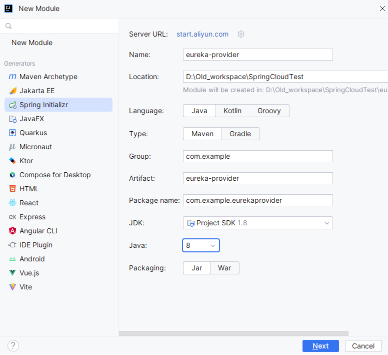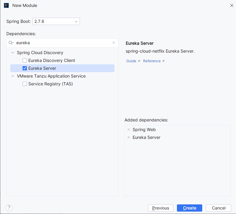 模块命名为 euraka-server。