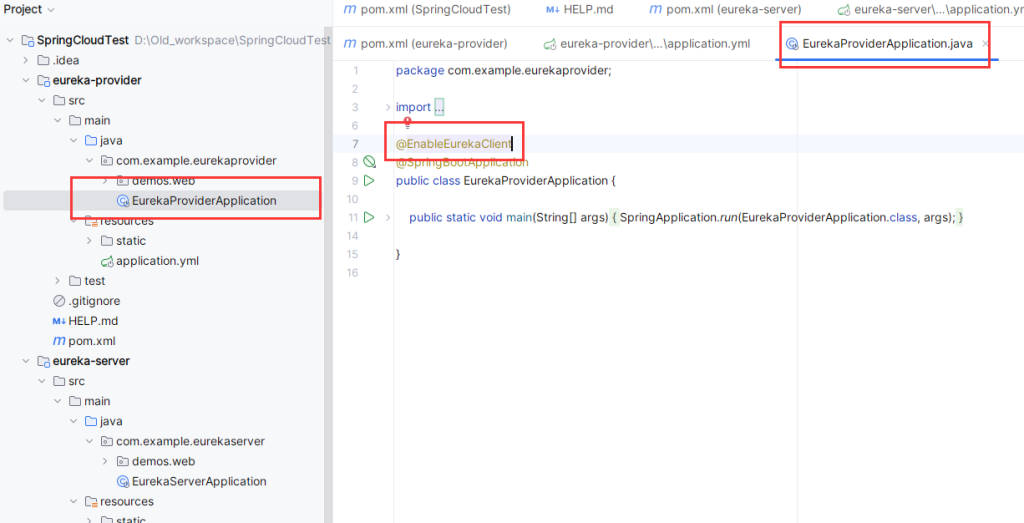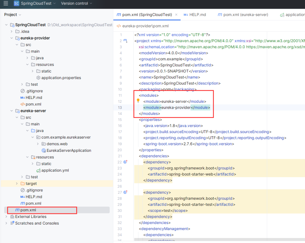 同理,为父工程增加新的子模块:eureka-provider: