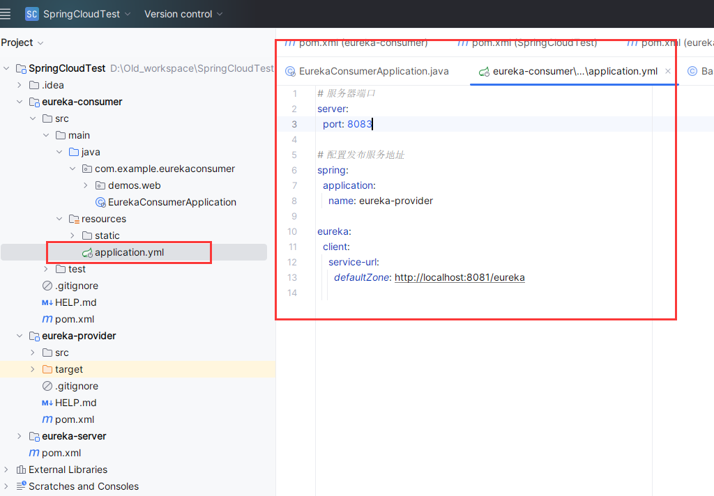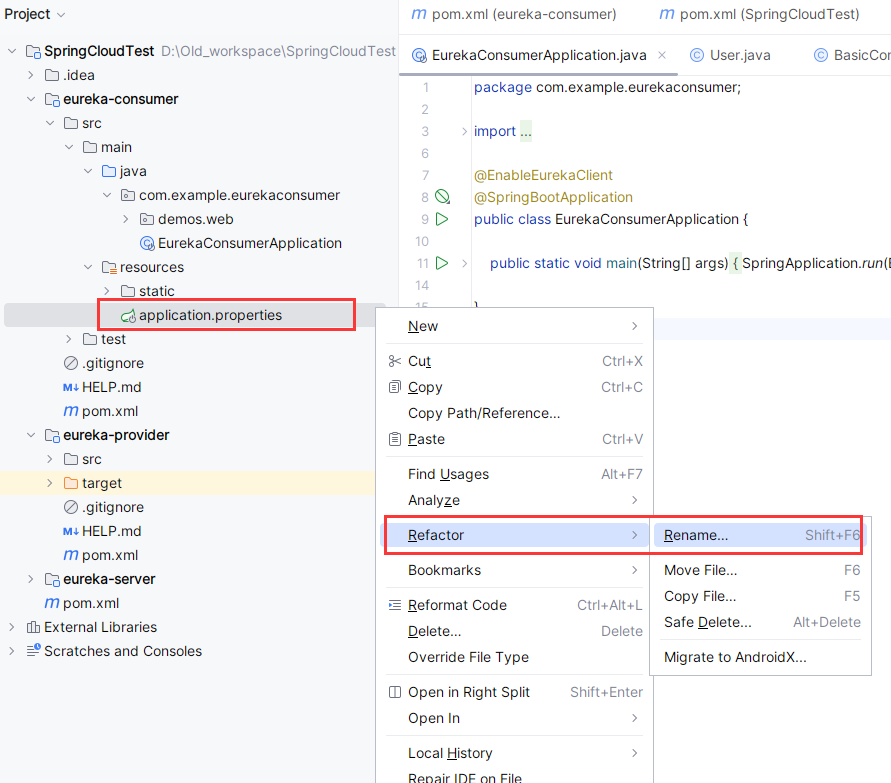 将 eureka-consumer 的 application.properties 配置文件重命名为 application.yml。