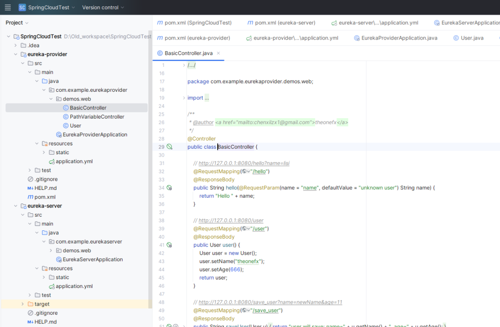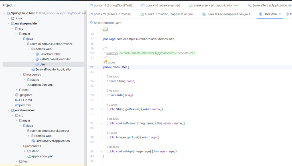 这里是创建 eureka-provider 模块时勾选 Eureka Discovery Client 自带的代码,包含两个控制器接口类和一个实体类,我们直接拿来用就可以。